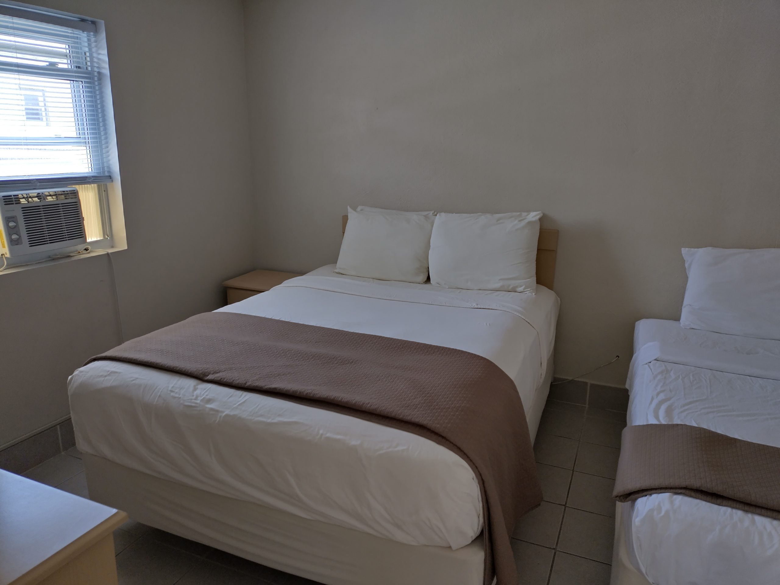 These are your entry-level rooms offering comfortable accommodations with essential amenities. They provide a great option for budget-conscious travelers or those looking for a simple yet cozy stay. These three-room units, with two bedrooms and a kitchen (no living room), are popular for weekly rentals. Located in the rear building, they are a great option for families, with one queen bed and TV per bedroom. Amenities include a full kitchen with a range top, refrigerator, and ceramic flooring throughout.